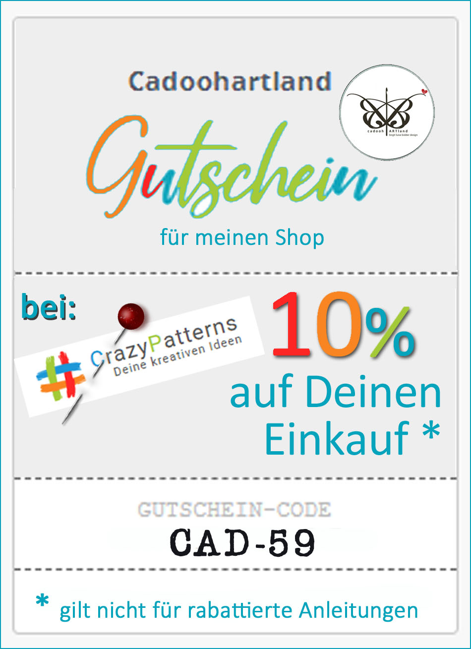 Bei der kurzen Variante Kette (wie oben die Hochzeitskette) werden 2 kleine und ein groĂes Element durch einen umlaufenden Zopfrand gefestigt. In der Anleitung findest Du dazu eine genaue Graphik und eine Beschreibung.