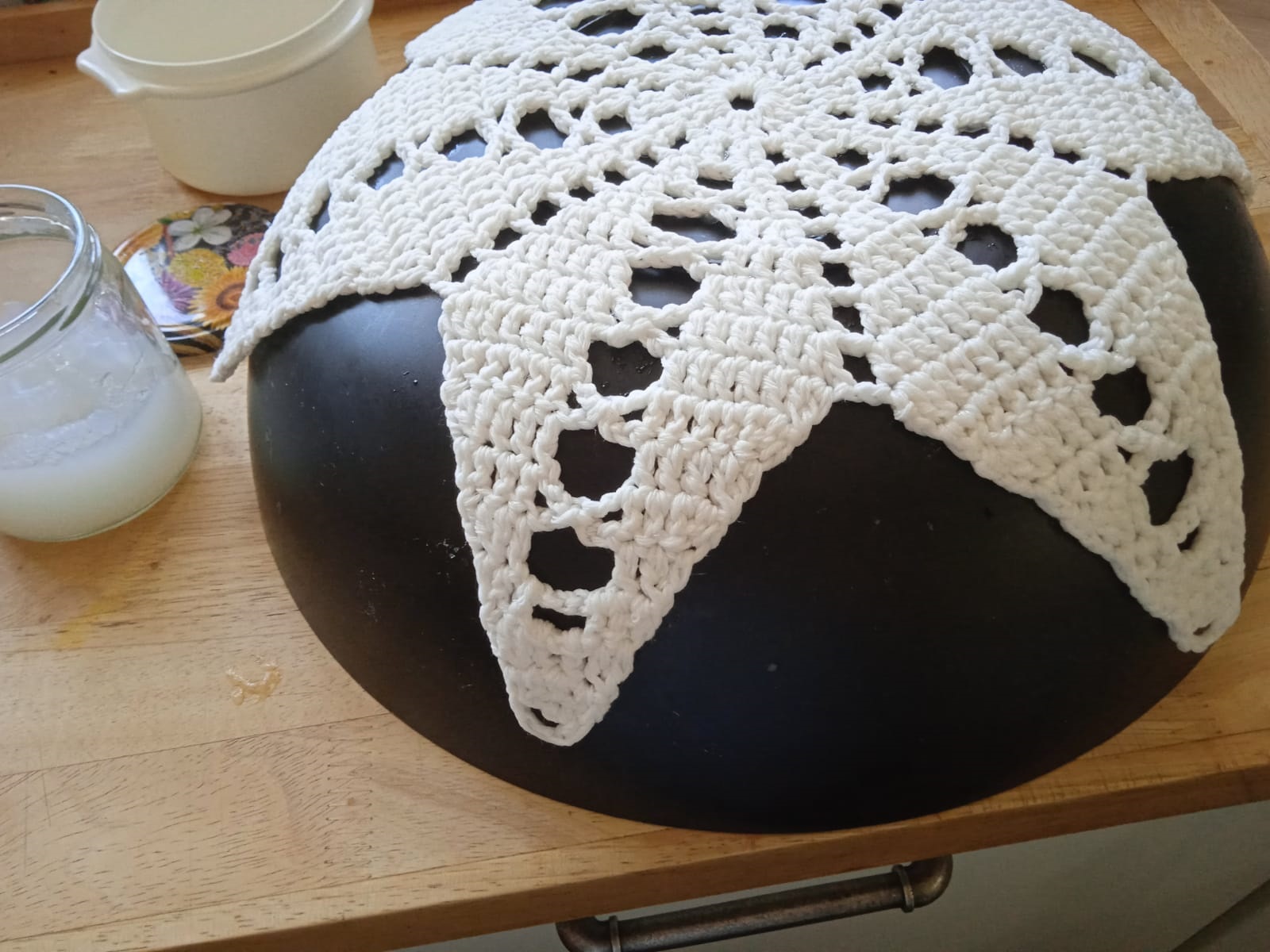 Please try it out on other crochet pieces (and colors), such as small tablecloths. By diluting the glue, you can achieve a lighter strengthening effect. Advantage: you can wash the glue out! And it is non-toxic.